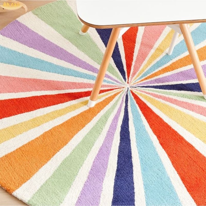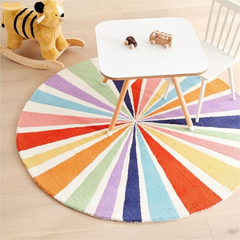 Le tapis chambre enfant rond arc-en-ciel est idéal pour que votre enfant, qu'il soit bébé ou adolescent, éveille son imagination et embellisse sa chambre.