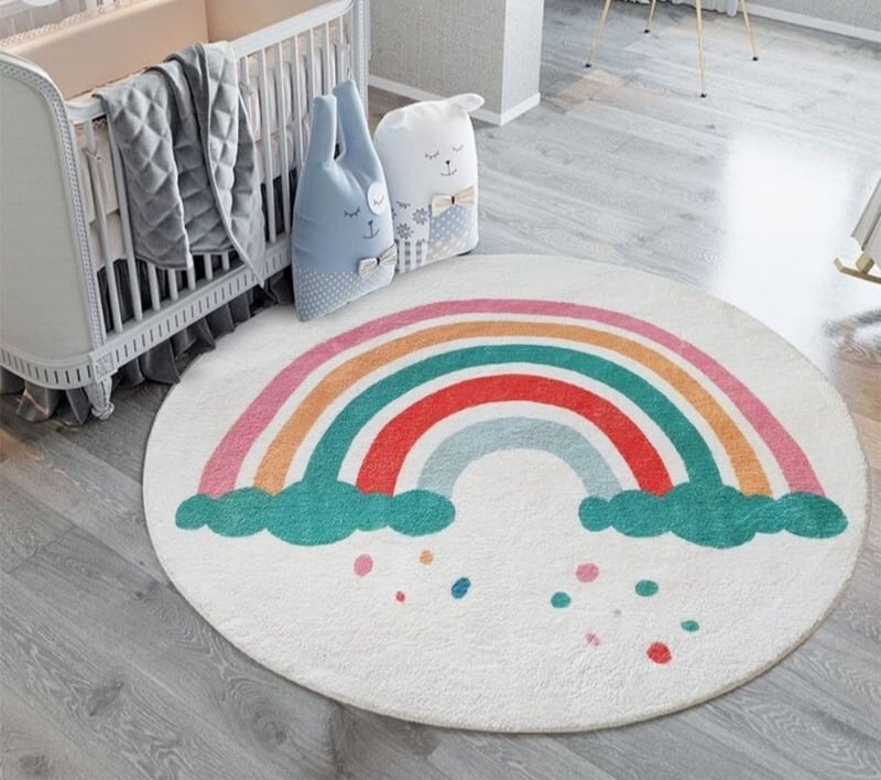 Tapis rond pour chambre d'enfant avec arc-en-ciel