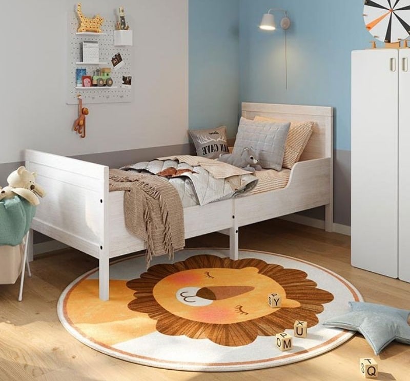 Le tapis rond à tête de lion est excellent pour stimuler l'imagination et la créativité d'un enfant. Il peut être utilisé pour des activités telles que le jeu de rôle ou la narration, aidant les enfants à développer leur langage, leur esprit critique et leur créativité. Les détails du lion sont soigneusement travaillés pour donner l'impression de marcher sur un animal géant, ajoutant une touche de fun et de fantaisie à la pièce. Ce tapis rond pour chambre d'enfant à tête de lion est un choix polyvalent pour décorer la chambre de votre enfant. Il s'adapte parfaitement à différents styles de décoration, allant d'un univers animalier à un univers de jungle. Il peut également être utilisé dans différents espaces, tels que les salles de jeux, les salles de classe et les salles de lecture.